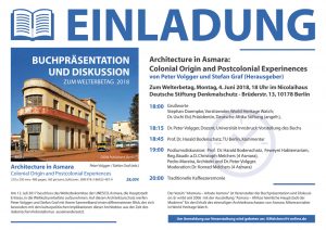 2017 wurde die Hauptstadt Eritreas, Asmara, von der UNESCO ins Weltkulturerbe aufgenommen. Zum Welterbetag stellten Peter Volgger und Stefan Graf im Nicolaihaus in Berlin ihren Sammelband zu architektonischen Besonderheiten und Implikationen Asmaras vor.